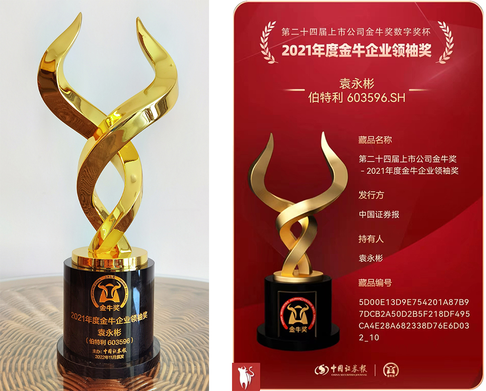 2022年12月29日,由中國證券報主辦的“2022中國上市公司高質量發展論壇暨第24屆上市公司金牛獎頒獎典禮”在海口舉行,備受資本市場矚目的“上市公司金牛獎榜單”正式揭曉。蕪湖伯特利在中國證券市場眾多上市公司中脫穎而出,董事長袁永彬博士榮獲“中國證券金牛獎——企業領袖獎”。